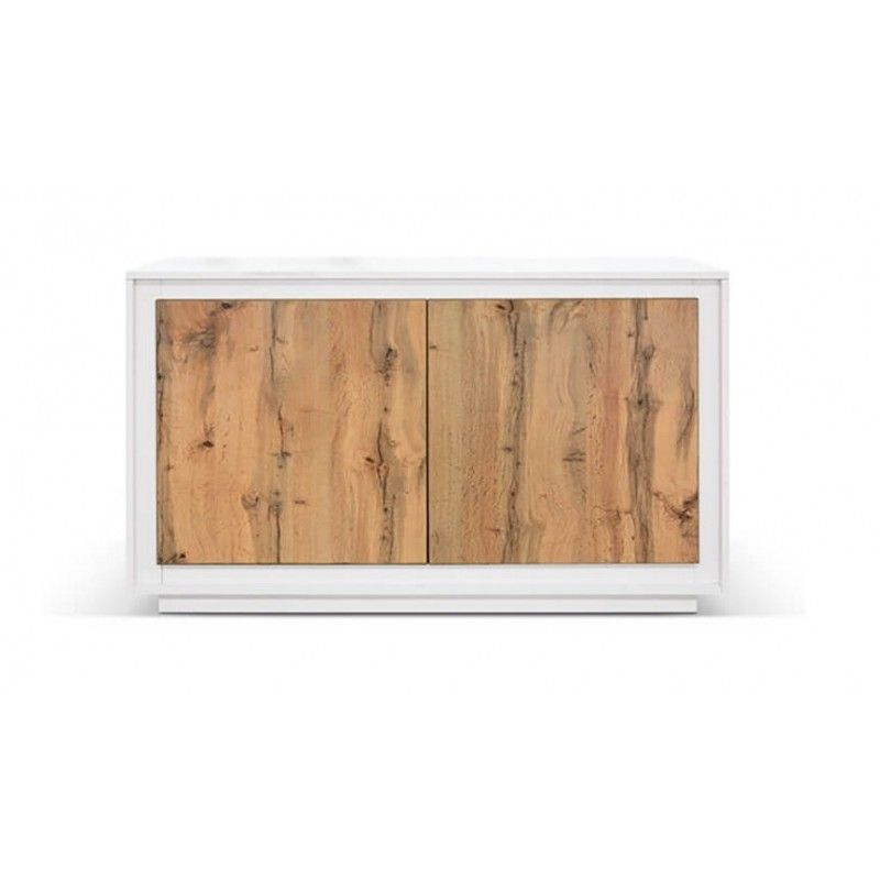 Base porta TV in legno massello di abete spazzolato con 2 ante battenti e 3 cassetti